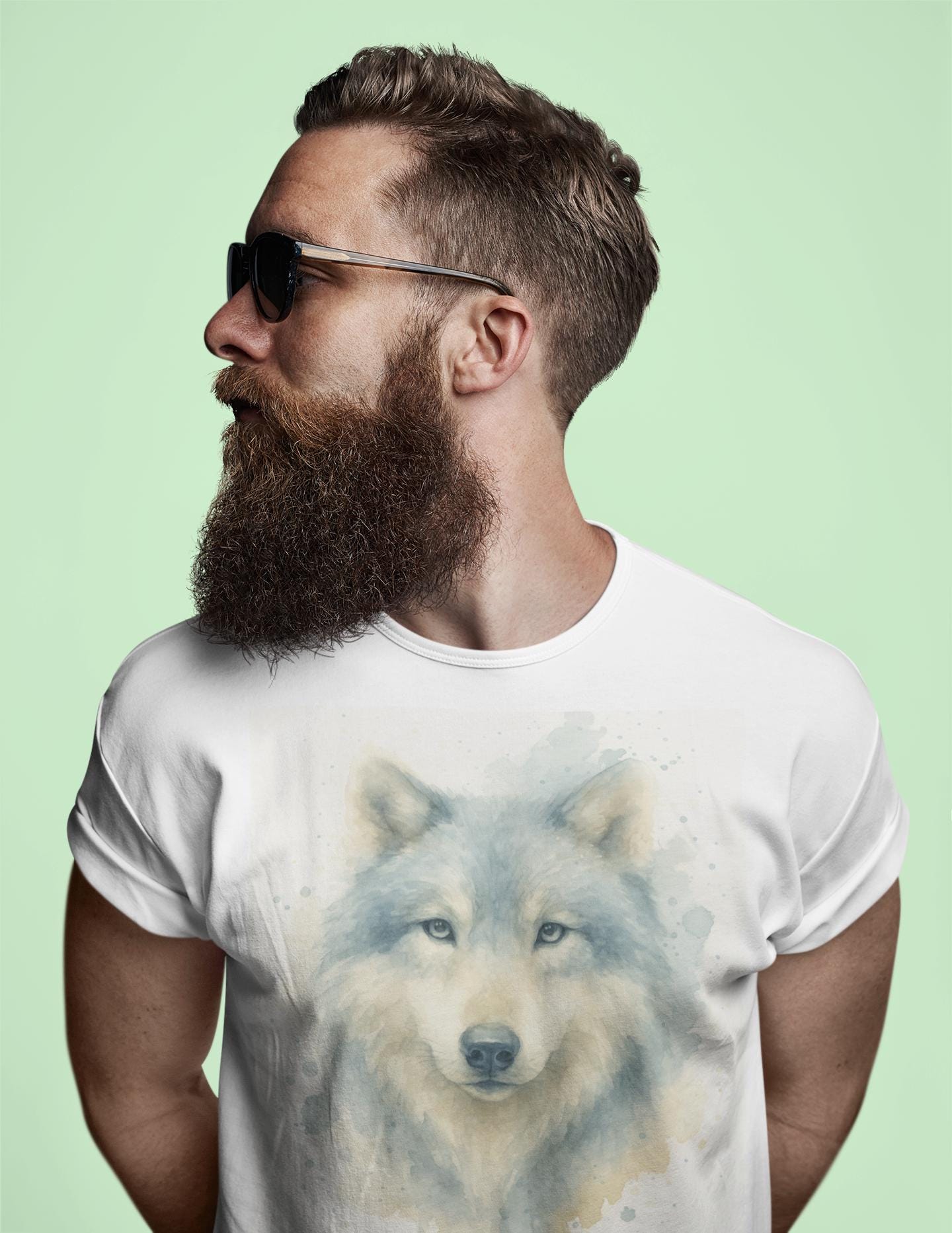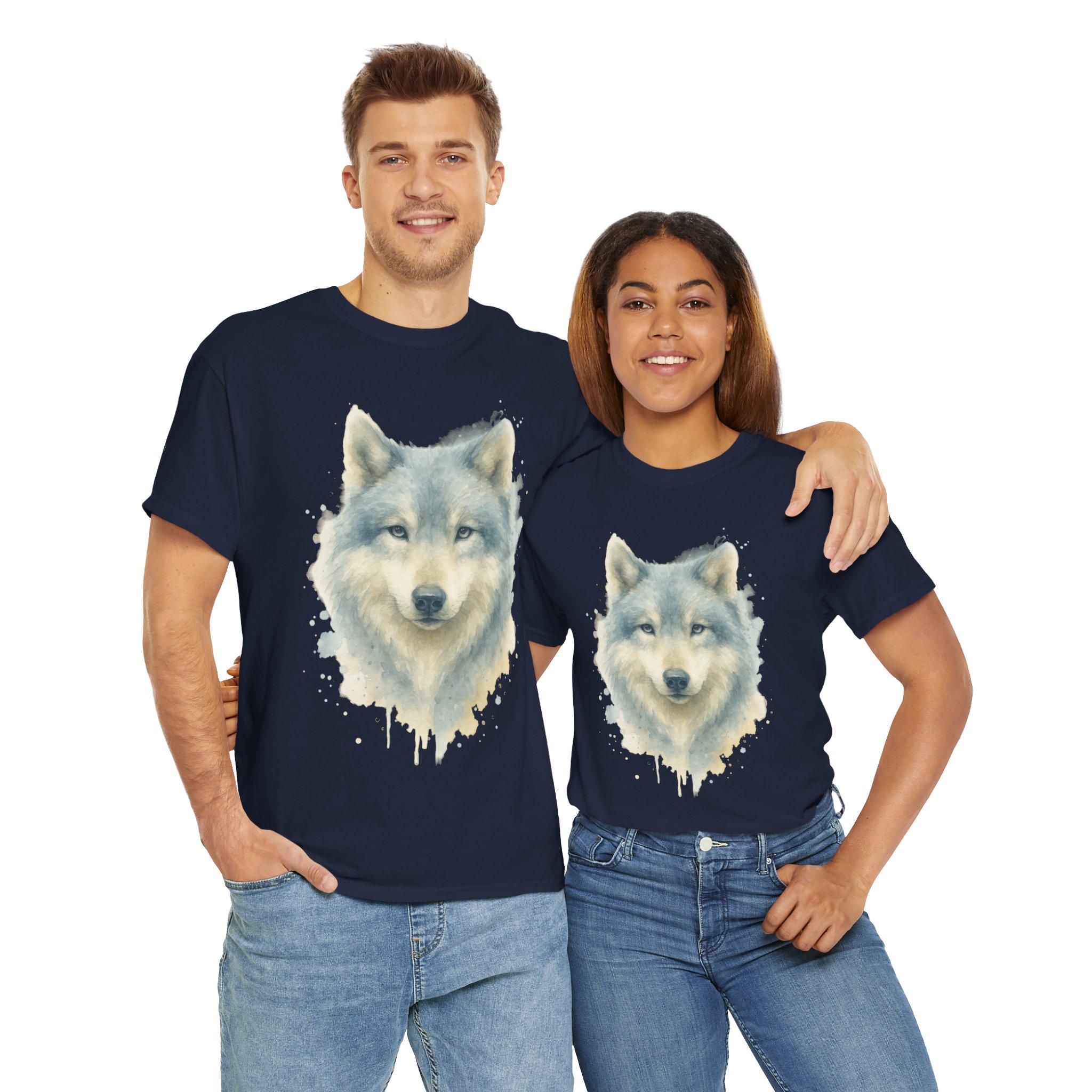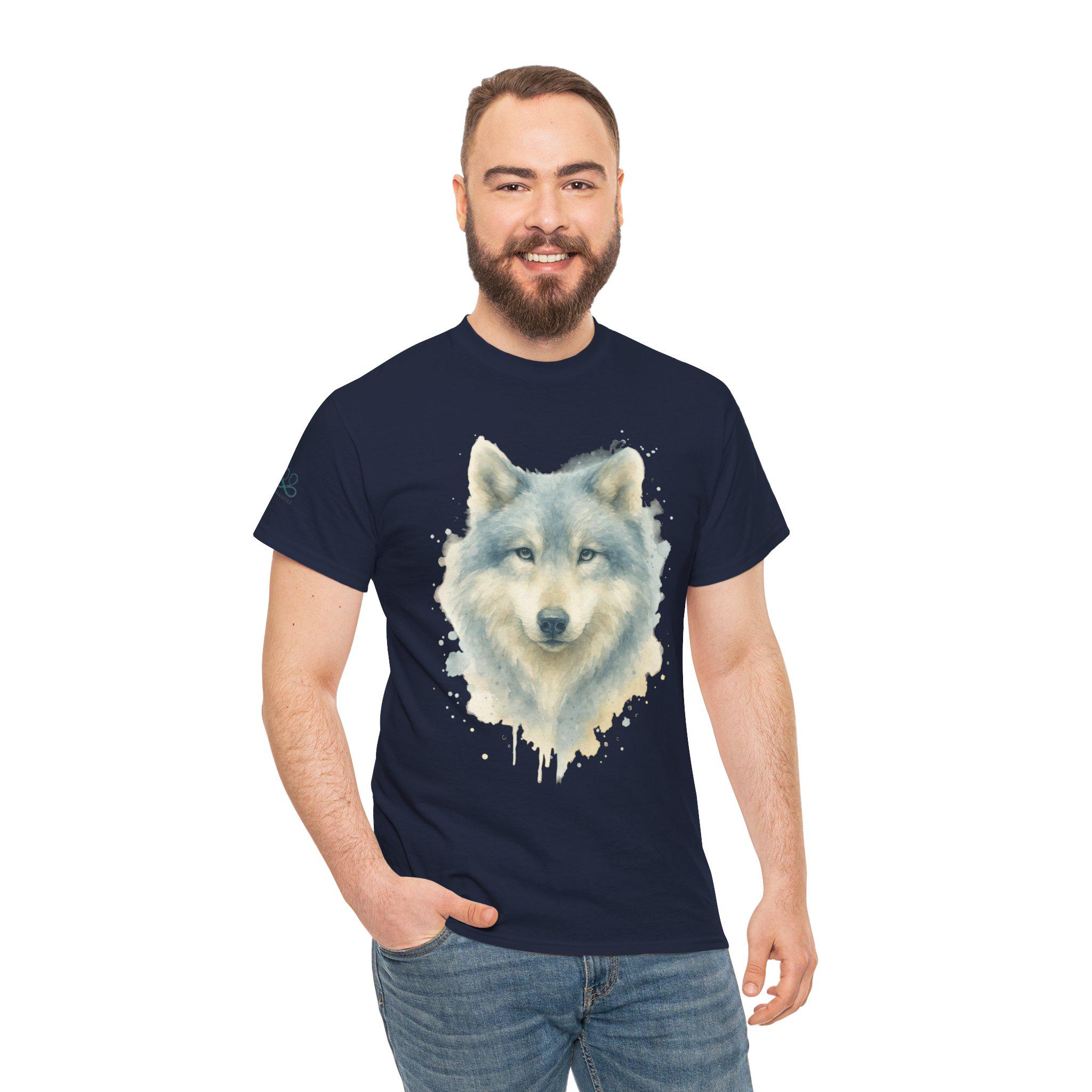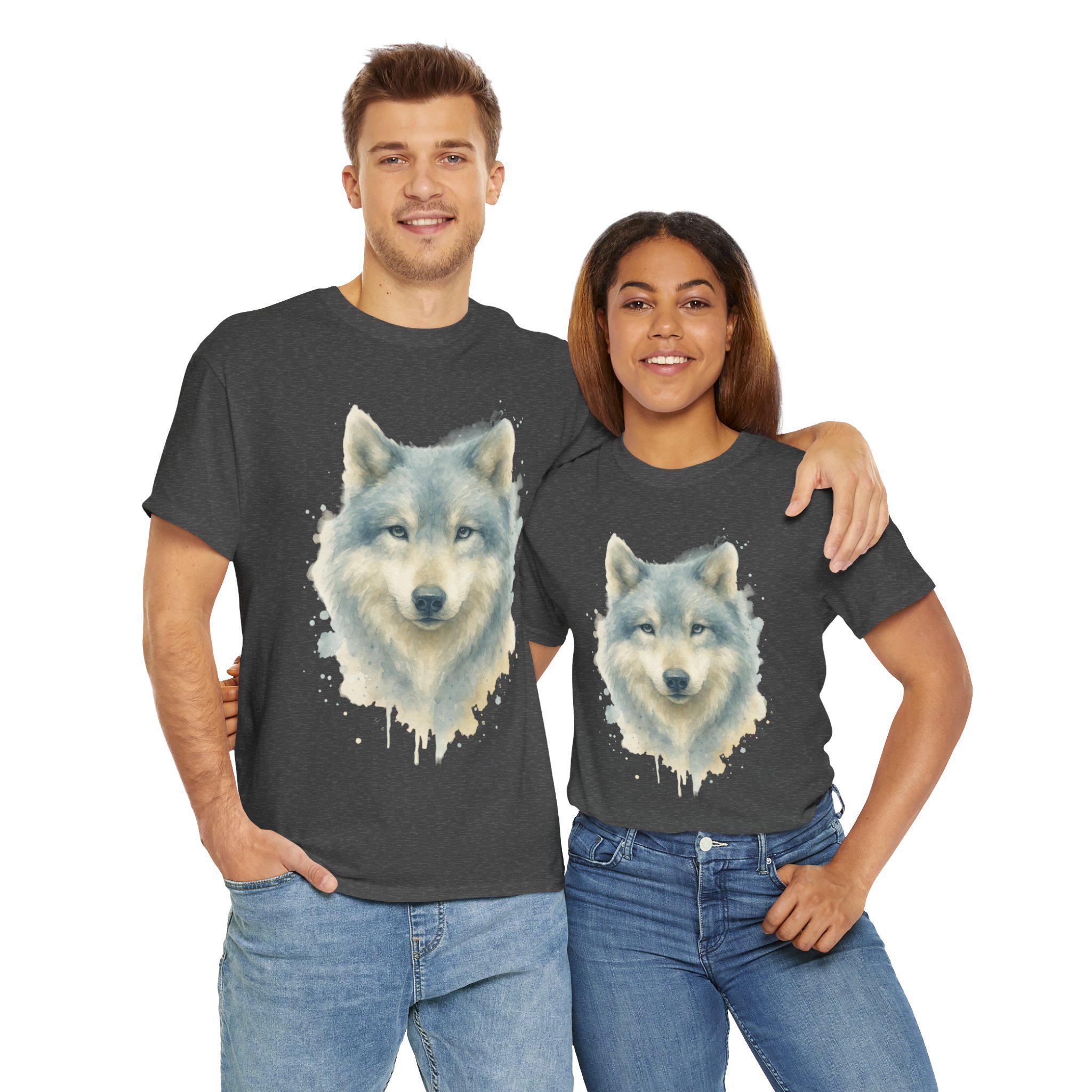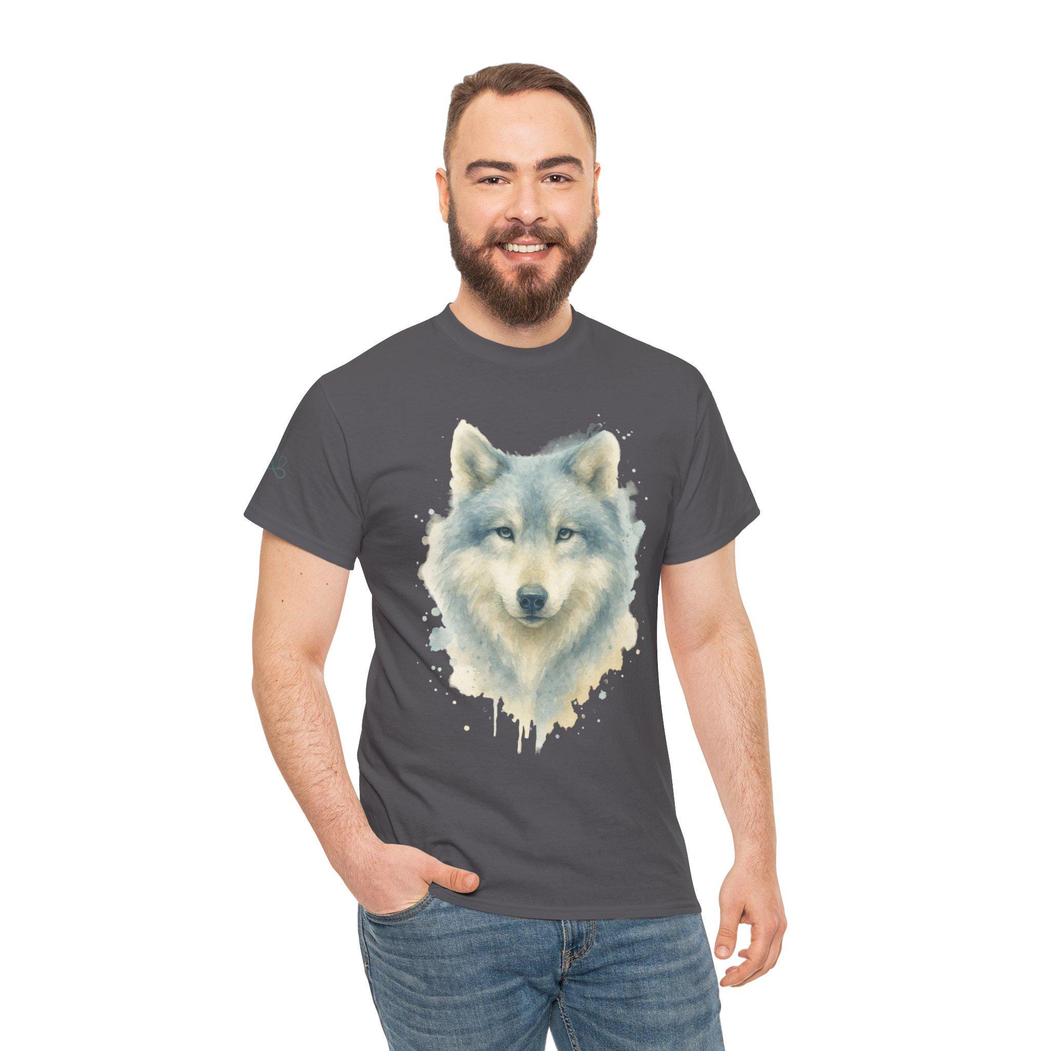 Soft and quietly bold — this cotton tee wears a wolf like a memory. The watercolor-style wolf portrait settles into the chest, its pale greys and warm neutrals blending into the shirt like a misty morning on the trail. It feels lived-in without being worn out: the classic crew neck and relaxed cut let the image breathe while offering everyday comfort. Wear it layered under a flannel for cool dawn hikes, or alone when you want a calm, grounded look that speaks to a love of the wild.